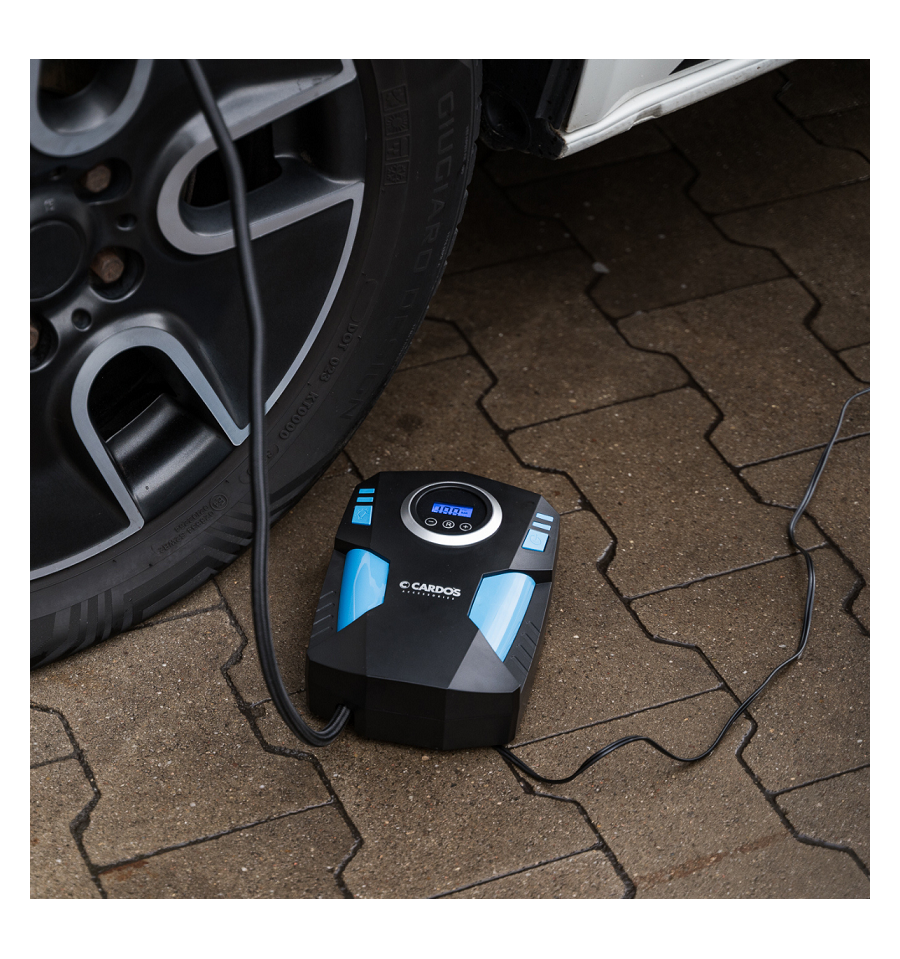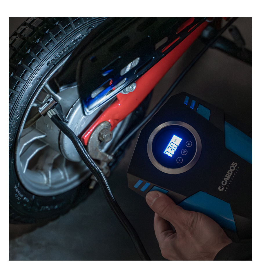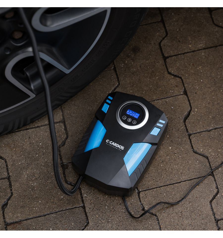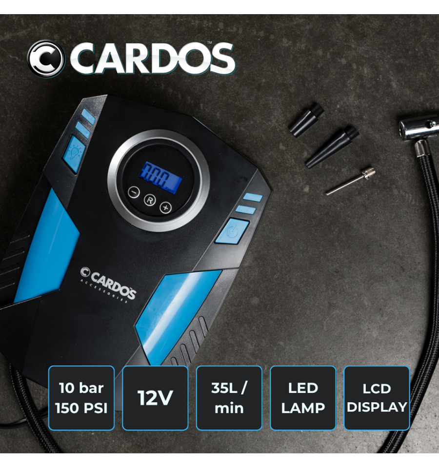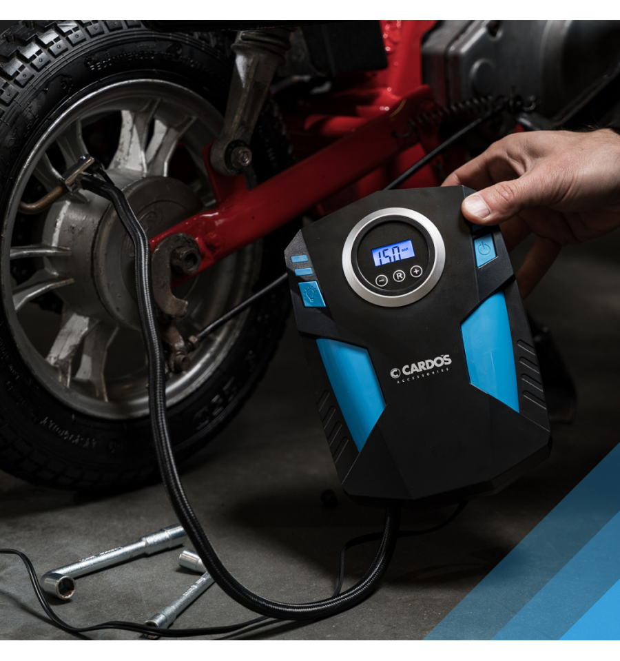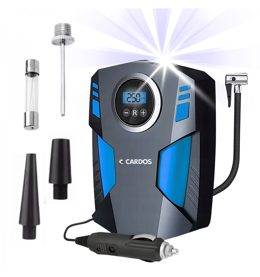 Kompresor samochodowy CARDOS AA406 z wyświetlaczem LCD to praktyczne i wydajne urządzenie do pompowania opon samochodowych, motocykli, rowerów oraz sprzętu sportowego i turystycznego.