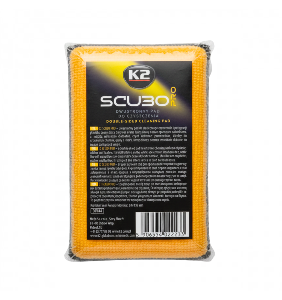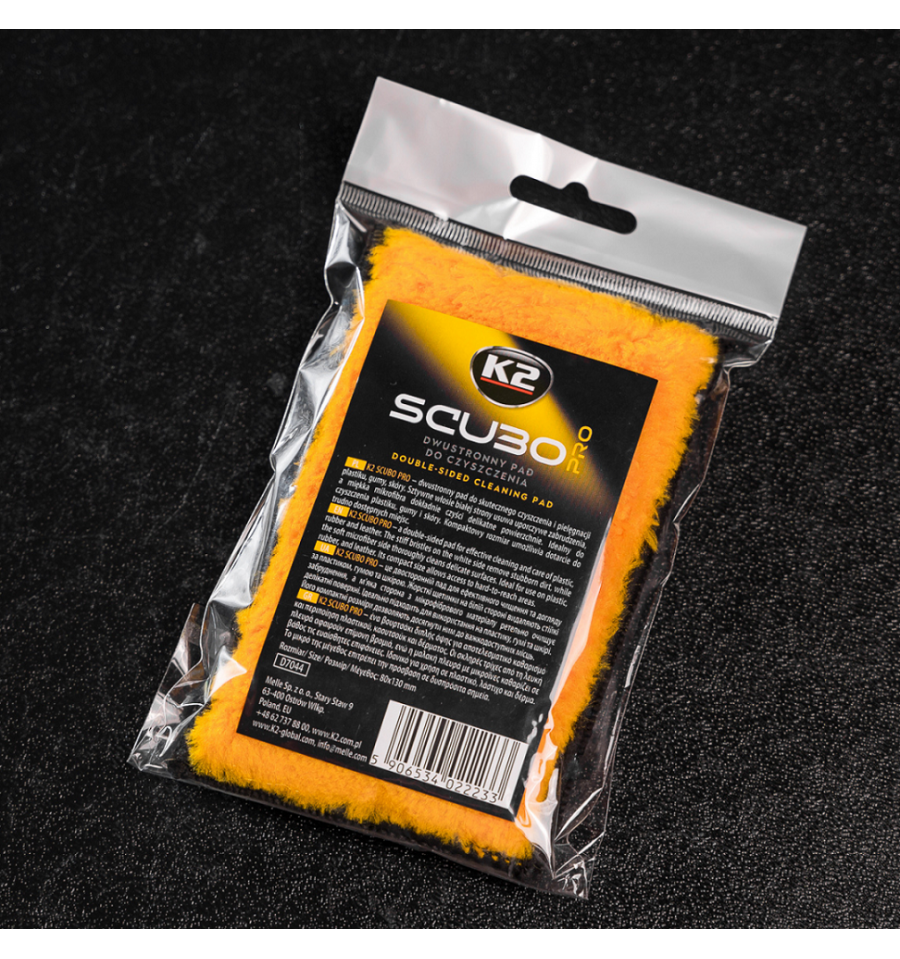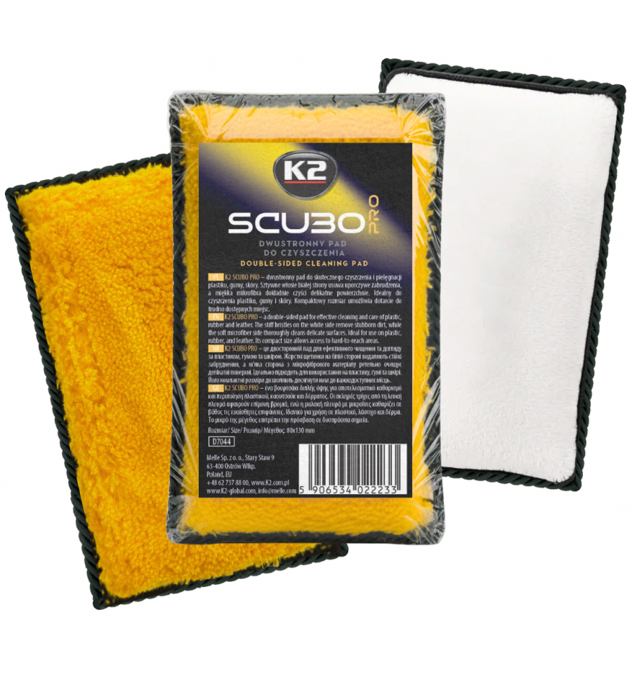 K2 SCUBO PRO to kompaktowy, dwustronny pad czyszczący, który skutecznie usuwa zabrudzenia i jednocześnie dba o delikatne powierzchnie. Biała strona z sztywniejszym włosiem rozbija uporczywy brud, natomiast żółta strona z grubą mikrofibrą doskonale zbiera wilgoć i bezpiecznie doczyszcza powierzchnię bez ryzyka zarysowań.