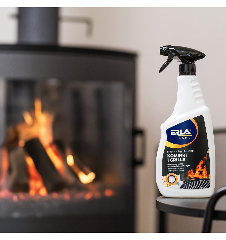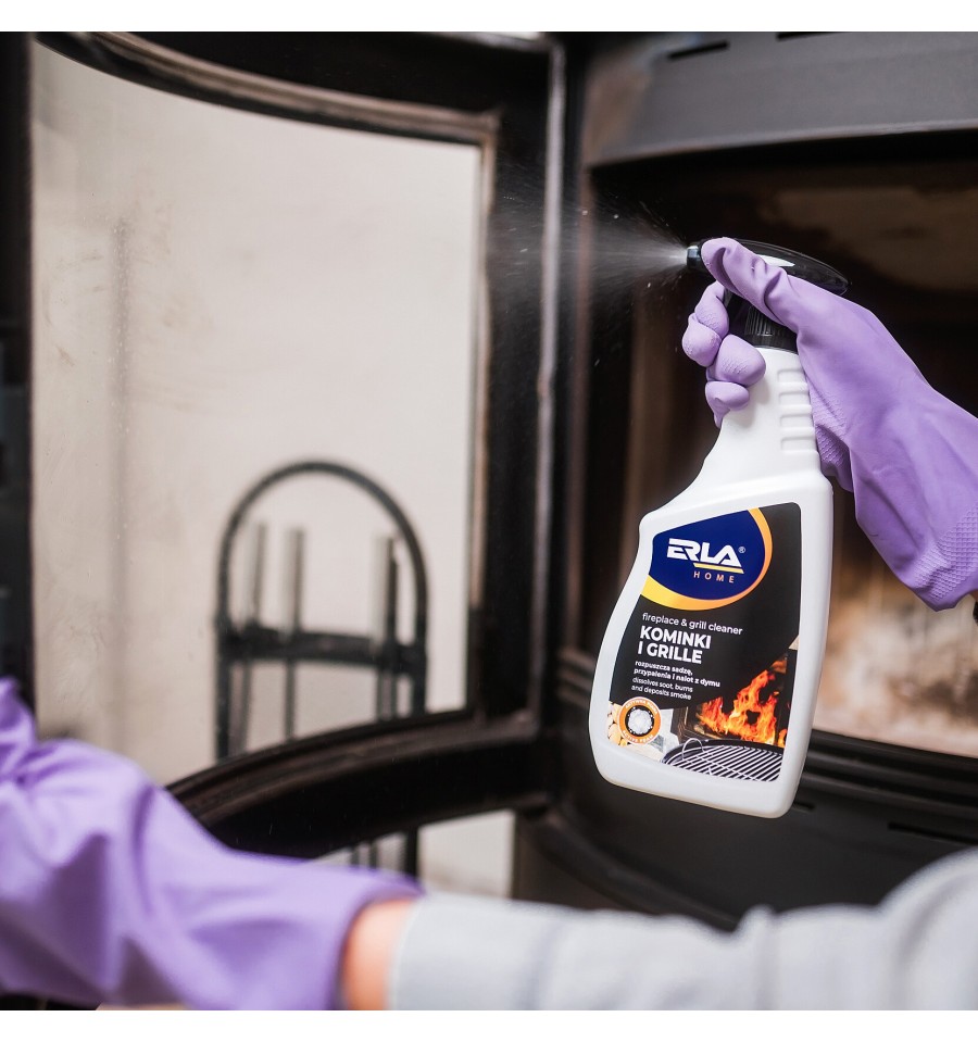 Silny i skuteczny płyn przeznaczony do czyszczenia szyb i wkładów kominkowych oraz grilli. Skutecznie usuwa przypalenia, tłuste osady, sadzę i ślady zadymienia. Formuła aktywnej piany dokładnie pokrywa zabrudzoną powierzchnię, wnika w zanieczyszczenia i rozpuszcza je, umożliwiając łatwe usunięcie bez potrzeby szorowania.