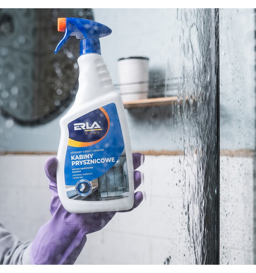 Kabina prysznicowa to miejsce, gdzie codziennie gromadzi się kamień, osady z wody i mydlany nalot. Z czasem powierzchnie tracą blask, a utrzymanie ich w czystości staje się coraz trudniejsze. ERLA KABINY PRYSZNICOWE to odpowiedź na ten problem - skuteczny preparat stworzony specjalnie do czyszczenia kabin prysznicowych.